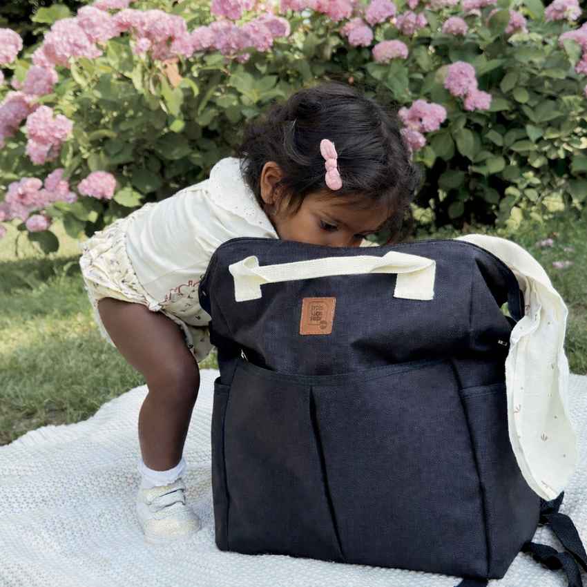 On le sait, un sac à langer est souvent mis à rude épreuve : il finit sur le sol de la salle d’attente, dans le sable au parc, parfois même éclaboussé par un petit accident de biberon mal fermé. C’est pour ça que le choix de la matière est important.