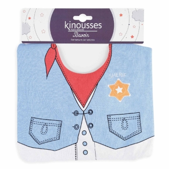 Dieses Lätzchen wird Ihren kleinen Schatz als Sheriff verkleiden und unterhalten! Doppellagig schützt dieses originelle und süße Baby-Lätzchen für Jungen die Kleidung perfekt.