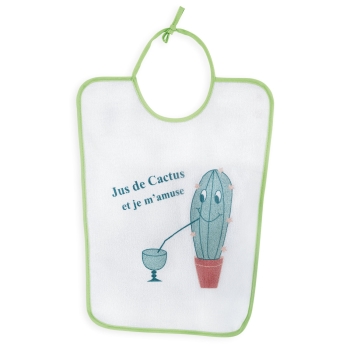 Diese großen Lätzchen messen 30x38 cm, um die Kleidung Ihres Kindes vollständig zu bedecken. Hergestellt aus Frottee auf einer Seite und plastifiziert auf der anderen, sind sie vollständig wasserdicht und lassen keine Flecken oder Flüssigkeiten durch. Gefärbt in Anisgrün und romantischem Rosa, werden sie sehr elegant sein. Die kleinen gedruckten Kakteen werden seine Lieblingsfreunde. Ihr Verschluss mit Bändern wird sehr praktisch ab 12 Monaten und bis zu den 24 Monaten Ihres kleinen Wunders sein. Das 3er-Set ermöglicht es Ihnen, die Lätzchen während der Mahlzeiten regelmäßig zu wechseln.