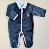 - 1 weißer und dunkelblaues Neugeborenen-Schlafanzug aus Drop-Needle-Velours mit Peter-Pan-Kragen (50% Bio) – 1 Monat