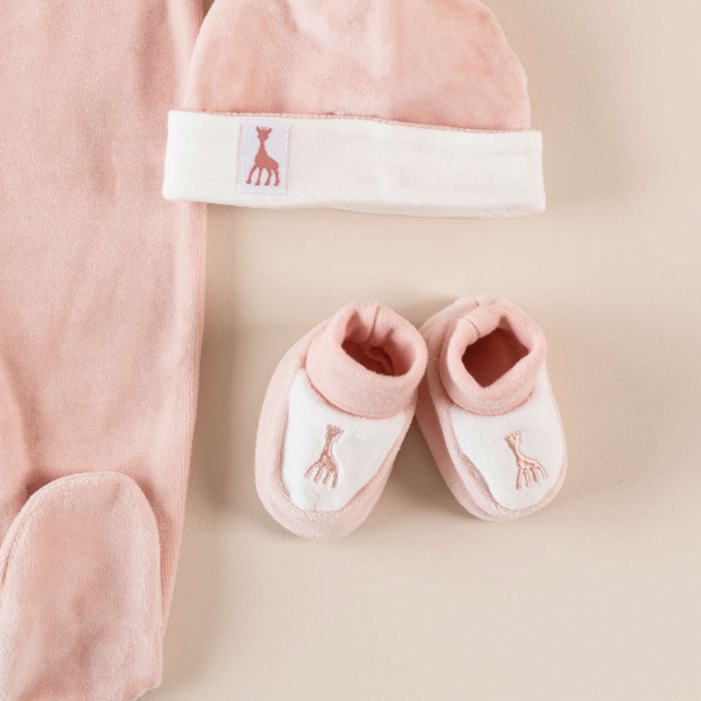 Complétez la tenue de votre fille avec cette paire de chaussons. Rose pastel, elles iront parfaitement avec le bonnet naissance de la même collection. Rose pastel, le dessus est blanc. Une broderie de qualité rose apportera une touche de douceur et de subtilité à l'ensemble. En velours doublé de coton à l'intérieur, cette paire de chaussons bébé Sophie la Girafe assurera son rôle en gardant les pieds de bébé bien au chaud.
