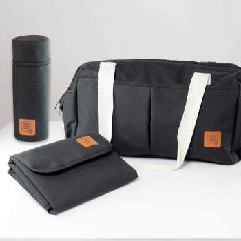 Geliefert mit einer mobilen Wickelunterlage und einer Thermohülle um die Flasche auf der richtigen Temperatur zu halten, ist sie bereit, Sie überall hin zu begleiten. Die integrierten Befestigungen ermöglichen es, sie einfach an einem Kinderwagen oder Koffer zu befestigen, ideal für Spaziergänge wie für lange Reisen.