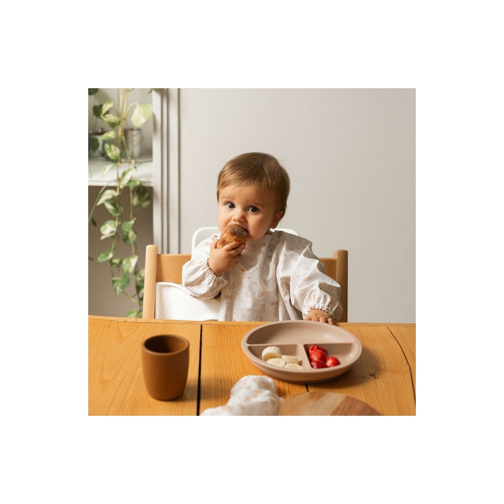 The meal set is available in soothing sand and caramel colors. These neutral and elegant shades are perfect for all kitchen styles and add a touch of modernity to mealtime. One of the main advantages of this meal set is its practicality. Each piece is designed to be ergonomic and easy to handle, both for parents and children. Parents will appreciate how easily these items can be cleaned, and their durability means they can be used for a long time without showing signs of wear.