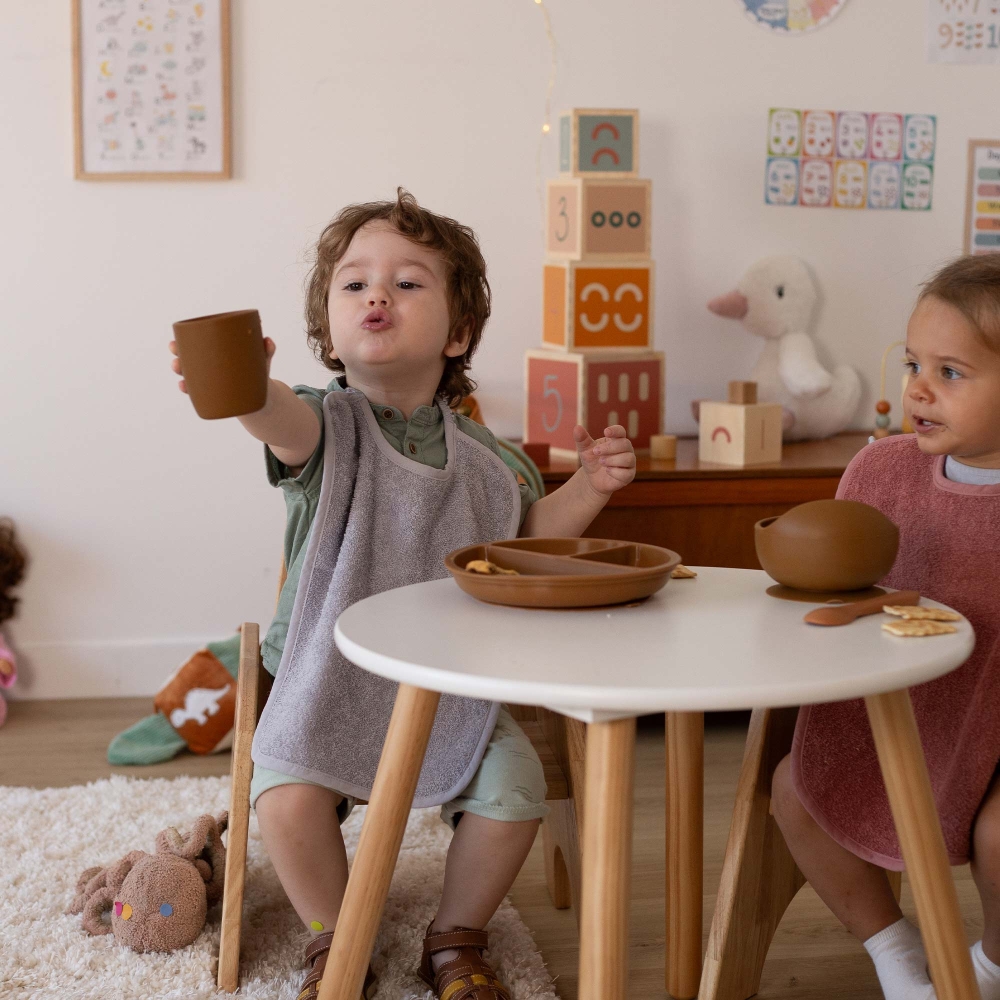 This kindergarten bib is designed to accompany children from their first years in group settings, whether at daycare, kindergarten, or at home. Thanks to its large 30x38 cm format, it effectively covers the torso, protecting clothes from stains during meals or manual activities like painting or modeling clay. Made from quality terry cloth, this baby bib is soft, absorbent, and particularly resistant to daily use. It is designed to last, even with frequent washing at high temperatures (up to 80°C), ensuring impeccable hygiene, essential in group settings. The elastic tie closure system allows children to put it on by themselves, promoting their autonomy from preschool onwards. Versatile, sturdy, and easy to maintain, this bib is an essential item for school or daycare supplies.