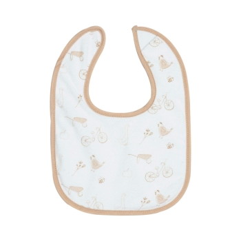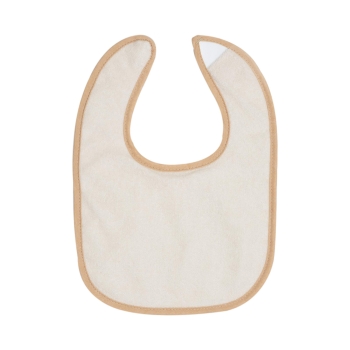 The bibs are made with two layers of soft terry cloth that effectively absorb small accidents during meals. Between these layers is a discreet and silent plastic membrane that prevents liquids from seeping through, while avoiding disturbing rustling noises for baby.