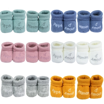 These newborn booties are available in several colors to match the outfit of your choice! Heat escapes through the extremities and your baby will have difficulty staying warm in the first few days. That's why it's recommended to add a pair of booties over a onesie. They come in a one-size-fits-all for newborns. Comfortable to wear, these baby booties are very soft for your child's comfort. Find similar models with other messages to reveal the news to your family and loved ones.