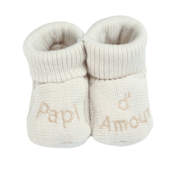 Keep your baby's little feet warm with these adorable newborn booties. Made of knit fabric, they provide gentle warmth and optimal comfort. The delicate "loving grandpa" embroidery will touch all grandfathers' hearts. Whether to announce happy news or simply convey an affectionate message, these booties specially designed for newborns are a perfect choice. Their soft and fluffy texture ensures optimal comfort for your little one's delicate feet, while their ergonomic design guarantees a secure fit, allowing your baby to move with complete peace of mind.