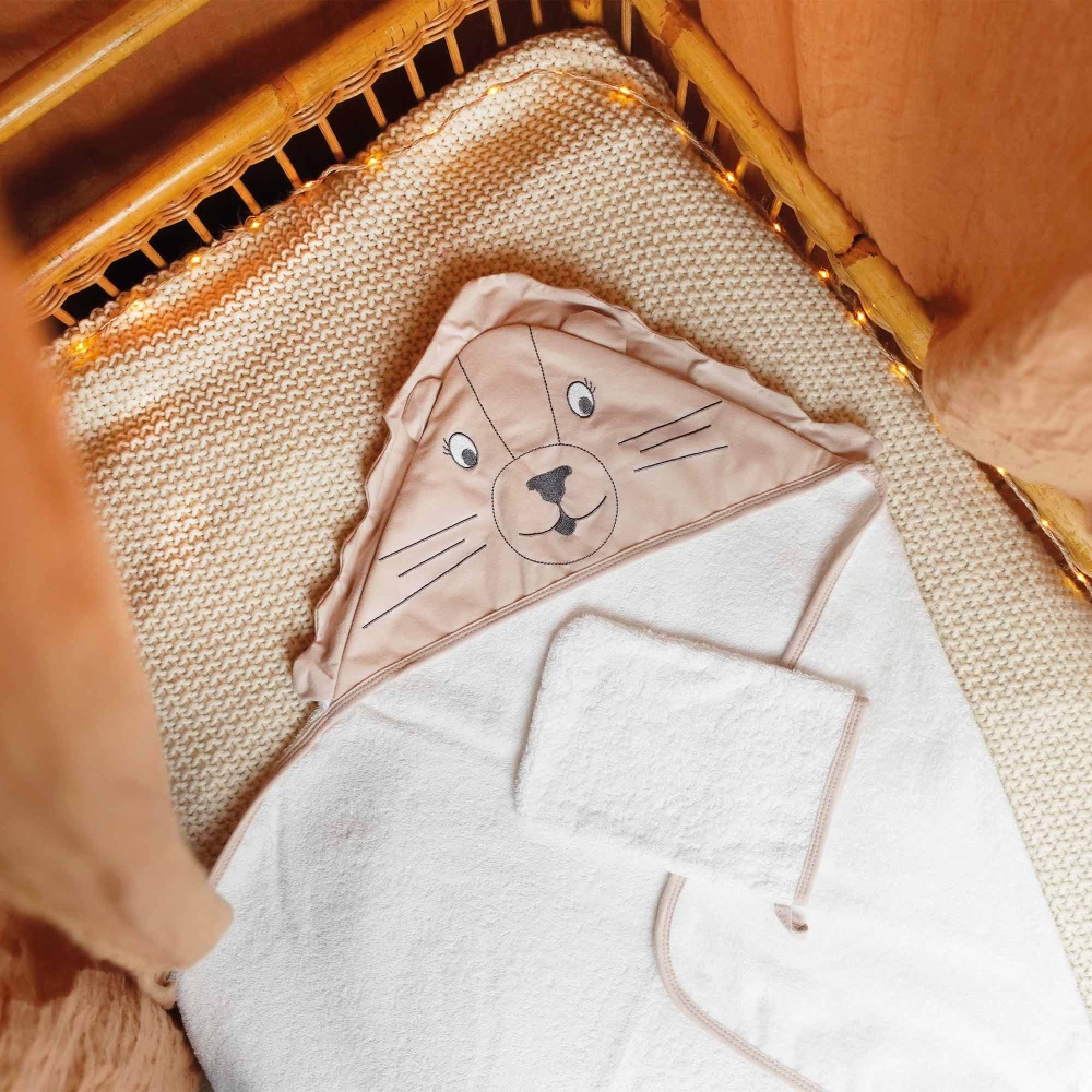 This hooded bath towel comes in a beautiful kraft box, ready to be gifted to celebrate the arrival of a newborn.