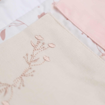 Fall in love with this portable organizer from the Rose et Lili collection. With its soft colors in ecru, white and pink tones scattered with floral patterns, it will perfectly match a tender and bucolic universe. Easy to hang with its small ties, you can also move it according to your desires and your decoration. Being portable, it can be attached to the baby's bed or even to the back of the car seat: this baby storage pocket will follow you everywhere, from the baby's room to vacation trips! The little extra: made of organic cotton, its material is lightweight, high quality and easy to maintain.