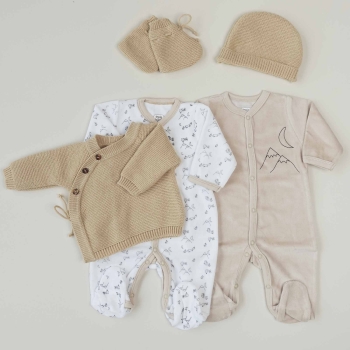 Choose this soft gift set to welcome baby and delight new parents. With its little mountains and neutral colors, it offers a touch of charm while being suitable for all genders. This set is designed to wrap baby in warmth and comfort, from birth to their first month. A practical and elegant gift, perfect for marking this special occasion.