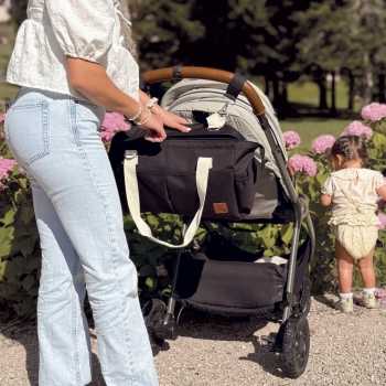 Lightweight, ergonomic and equipped with a side pocket dedicated to the bottle, it's easy to carry on a daily basis. Its elegant black color prevents repeated stains and matches both mom's and dad's style.