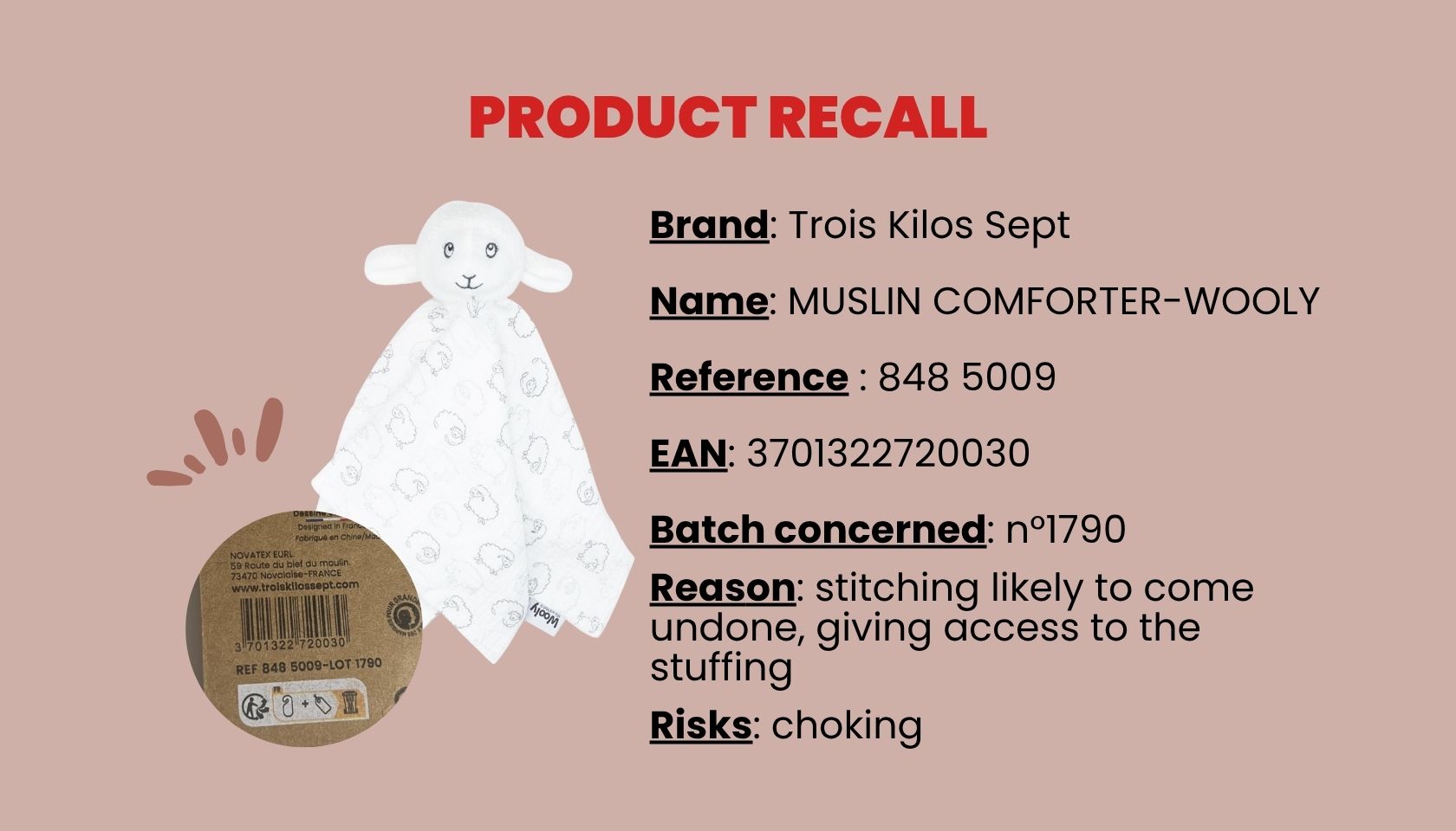 Product recall - DOUDOU WOOLY - 848 5009 - Lot No. 1790 (find out more)