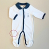 - 1 white and navy blue drop needle velour newborn sleepsuit with Peter Pan collar (50% organic) - 1 Month