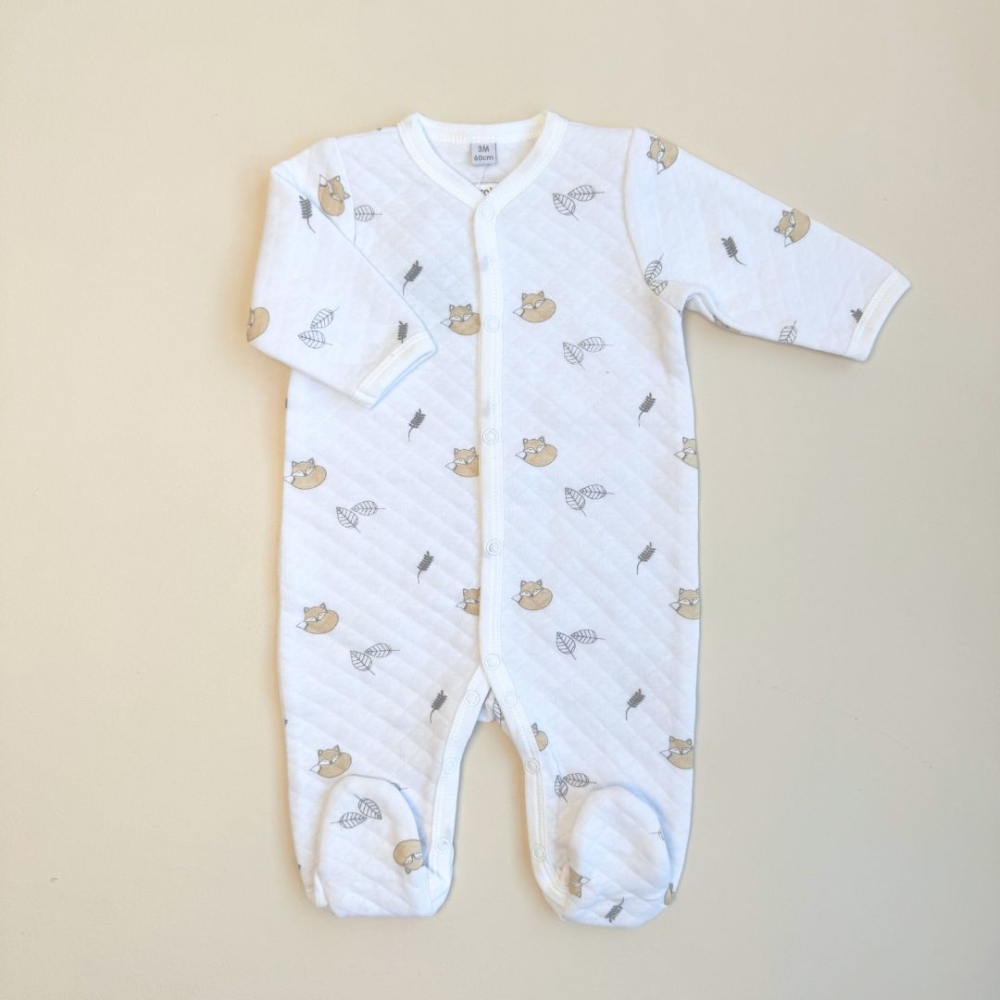 - 1 fleece newborn sleepsuit with little fox and forest leaves pattern - 3 months