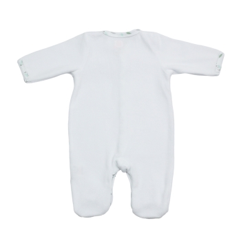 - 1 velvet pyjama with front opening by snap fasteners in white with a cat print on the chest