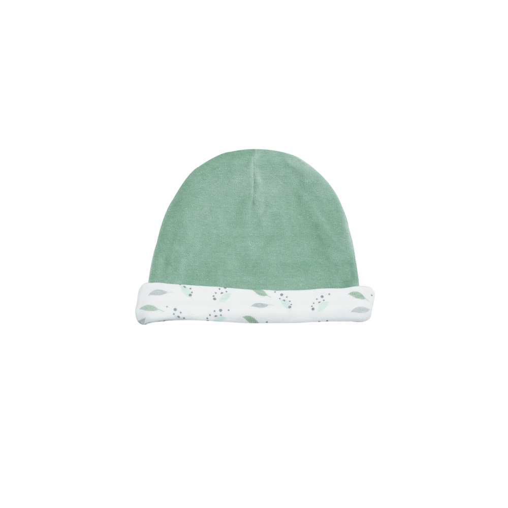 - 1 velvet newborn hat in green with a cuff to match the bodysuit