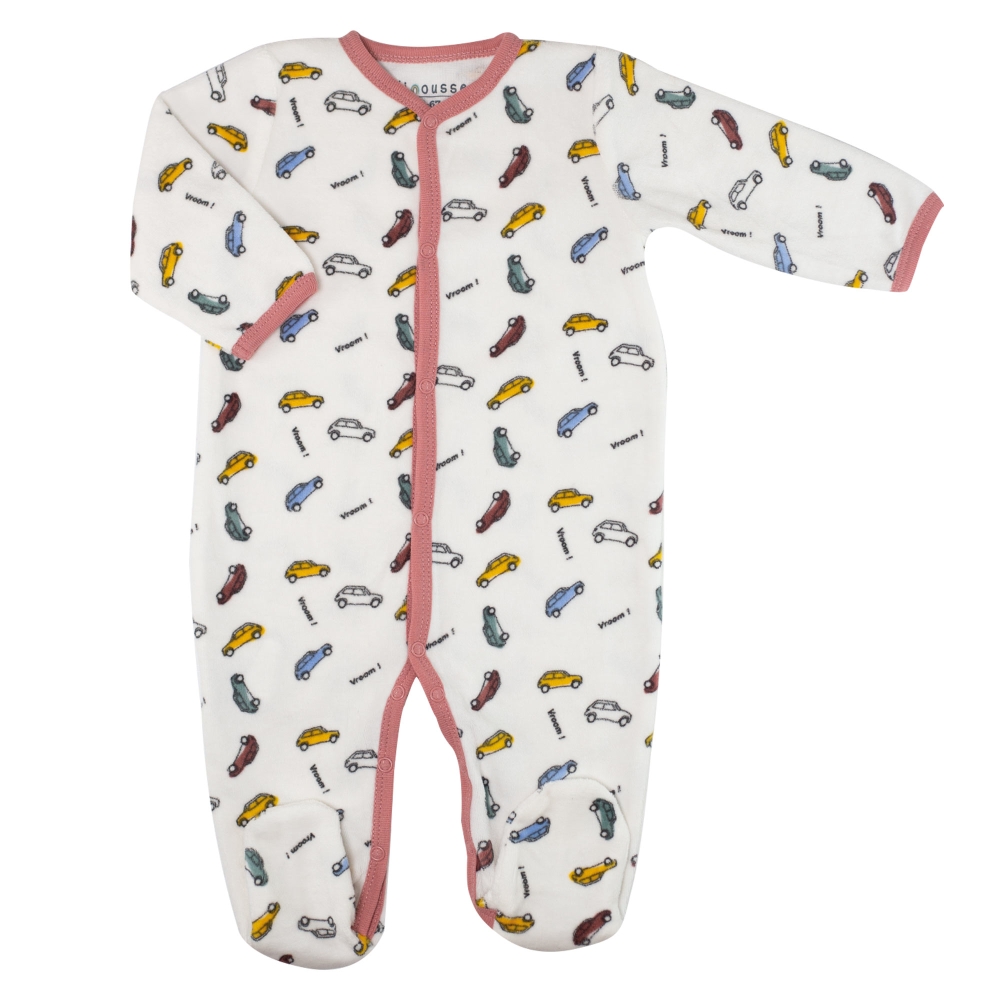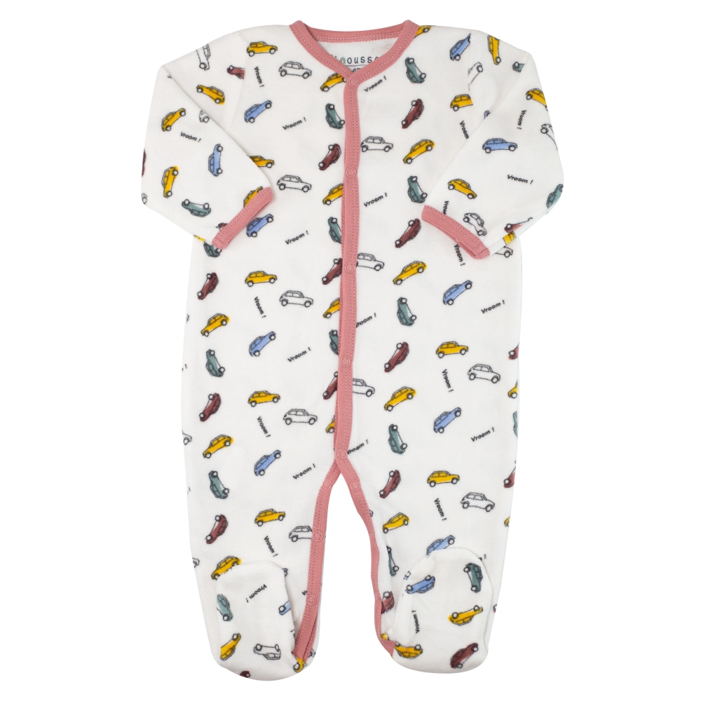 Thanks to its full front opening with snap fasteners, this baby sleepsuit makes dressing and changing easy, even when baby is asleep. A real asset for new parents, especially during nights or first stays at the maternity ward. Made from soft velour, this baby sleepsuit wraps your child in comfortable fabric, ideal for maintaining a pleasant temperature in all seasons, particularly in autumn and winter. The car patterns add a playful and trendy touch while remaining understated and unisex. This design suits both little girls and boys, making it a popular choice for parents and grandparents looking for a useful and elegant gift. Easy to put on, comfortable to wear and simple to care for, this baby velour sleepsuit fits perfectly into family daily life. It's a versatile garment, suitable for nighttime as well as quiet moments at home.