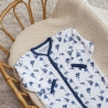 Its beige color, combined with delicate royal blue floral patterns, brings a refined and timeless touch. This balanced design remains unisex and suits both little girls and boys. It easily fits into a newborn wardrobe and is a safe choice for an elegant and useful gift.