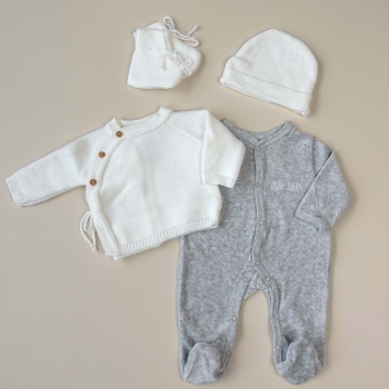 Felicita a los nuevos padres con nuestro pack Mini Nous. ¡Una atención con colores atemporales que será unánime! Compuesto de punto y terciopelo, las materias presentes en este cofre están cuidadosamente seleccionadas para mantener caliente al bebé desde sus primeros días de vida. Con este regalo, estás seguro de no equivocarte.
