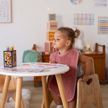 Este babero con lazos para bebé (30x40 cm) está diseñado para acompañar las comidas de los más pequeños ofreciendo una protección máxima contra las manchas y las salpicaduras. Gracias a su gran formato, cubre generosamente el torso del niño, ya sea en la mesa, en la guardería o durante actividades manuales. Confeccionado en 100% algodón, combina suavidad y gran capacidad de absorción, garantizando al mismo tiempo un confort óptimo. Ideal desde los primeros meses, este babero grande para bebé se distingue por su sistema de cierre con lazos: flexibles y resistentes, permiten un ajuste seguro sin comprimir el cuello del niño.