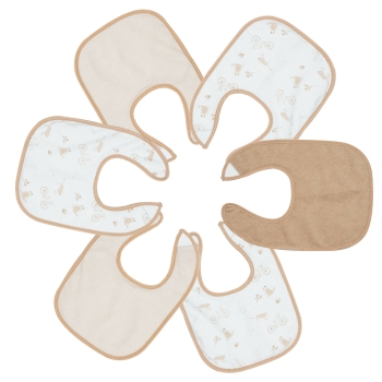 Este lote de 6 baberos para bebé de primera edad es ideal para acompañar a los padres primerizos desde las primeras comidas del bebé. Cada babero se cierra fácilmente mediante un velcro situado en la parte posterior del cuello, permitiendo un ajuste rápido y seguro. Prácticos y cómodos, estos baberos están diseñados para ofrecer una protección óptima manteniéndose agradables de llevar para el bebé.