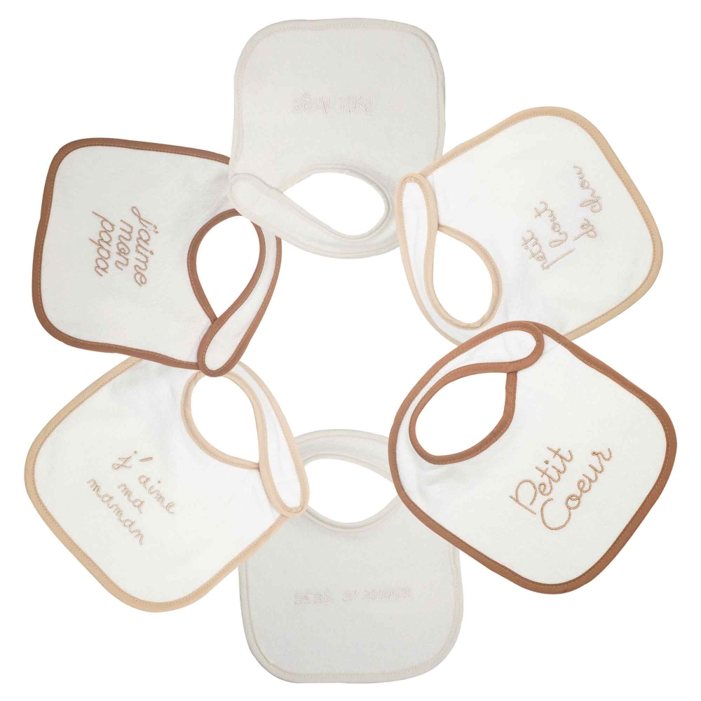 ¿Busca baberos adaptados a la piel delicada de su bebé? Este lote de 6 baberos de nacimiento marca todas las casillas. Gracias a su tono beige neutro, se adaptan tanto a las niñas pequeñas como a los niños pequeños. Cada pieza está adornada con un mensaje entrañable, aportando una dosis de buen humor en cada toma o biberón. Fáciles de poner, simples de lavar y realmente adorables, estos baberos son una idea perfecta para los padres jóvenes, ya sea para su bebé o como regalo de nacimiento.