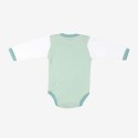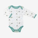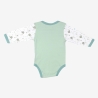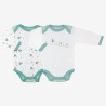 Descubre nuestro pack de 2 bodies elefante de manga larga. Con su abertura de sisa americana, podrás simplemente pasar el body por la cabeza de tu bebé. Esto permite no tener que quitar completamente el body durante un cambio de pañal gracias a los 3 botones a presión presentes en la entrepierna. Las mangas largas también permiten cubrir bien los brazos de tu bebé para mantenerlo calentito. El primer body blanco está cubierto de pequeños elefantes grises y blancos. También tiene toques de verde. El segundo body es blanco con 3 motivos de elefante en la parte delantera. La parte trasera del body es verde claro con mangas blancas.