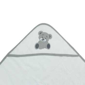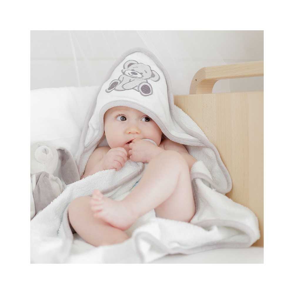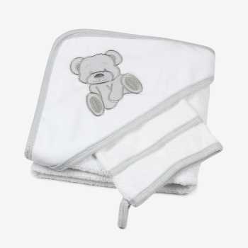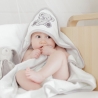 Conjunto capa de baño para bebé + manopla de baño en felpa 100% algodón.