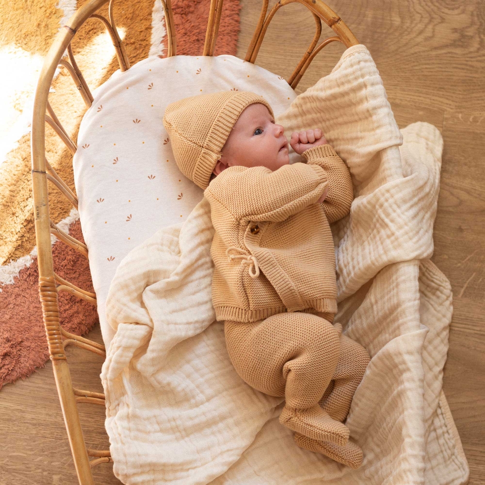 La suavidad y el confort de esta chaquetita de nacimiento de punto será imprescindible para el bebé en la maternidad. Talla única 0-1 M estatura 50 - 54 cm