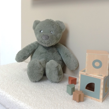 Este gran peluche oso de 45 cm está diseñado para ofrecer al bebé un compañero a la vez suave, tranquilizador y estético. Su tono arcilla, delicado y neutro, se integra naturalmente en todas las decoraciones, tanto clásicas como modernas. Esta elección de color también permite proponerlo como regalo tanto para un niño como para una niña.