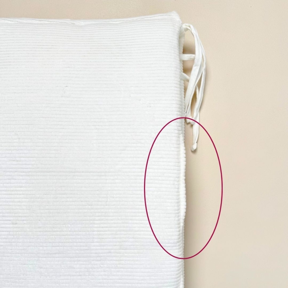 El protector de cuna posición alta está ligeramente manchado en una de las caras. Un simple lavado a mano con quitamanchas permitirá dejarlo como nuevo. Los otros productos no tienen su embalaje. Al elegir este lote, haces un gesto para luchar contra el desperdicio.