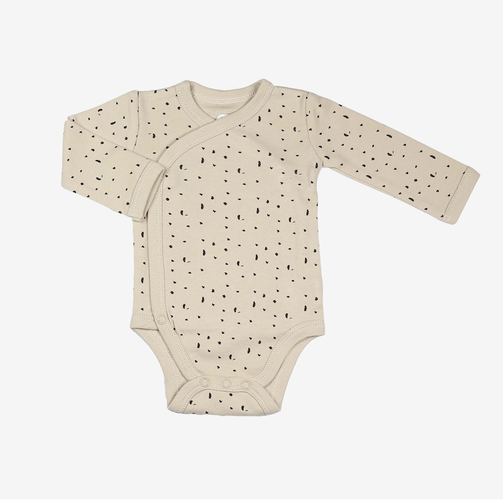- 1 body cruzado para bebé 100% algodón certificado OEKO-TEX® STANDARD 100 beige jaspeado