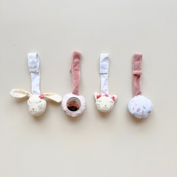 2 en 1, el tapete de juego para bebé en algodón ecológico de la colección Rose et Lili se transforma en tapete de parque una vez retirados los arcos. Multiacividades, permitirá al bebé divertirse estimulando sus sentidos. Se incluyen cuatro adorables colgantes: gatito, conejito, espejo y pelota sonajero. Otras actividades en el suelo completan el momento de juego: flor y conejito de papel crujiente, así como un espejo para ayudar al bebé a aprender a reconocerse. Un anillo de dentición de silicona también está integrado en el tapete de juego para ayudarle a aliviar sus primeras molestias dentales. Su estampado floral rosa es perfecto para complementar la habitación de una niña.