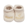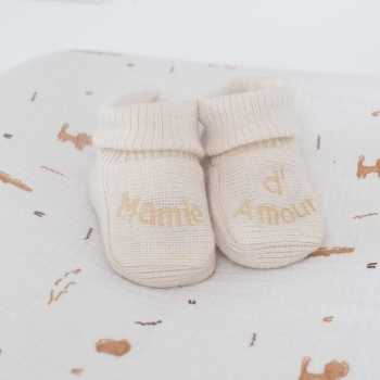 Enamórese de este delicado par de patucos para bebé que le permitirá transmitir el más dulce de los mensajes.