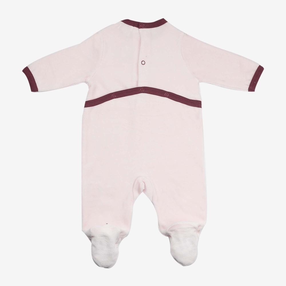 Confeccionado en terciopelo de calidad, este abrigará a tu pequeña toda la noche acompañado de una prenda interior de manga larga y un saco de dormir en media estación e invierno. Con sus pies integrados, tu pequeño estará cubierto completamente para no pasar frío. Con su cierre de presión en la espalda, estarás tranquilo de que tu pequeña permanecerá bien cubierta durante todo el sueño. Rápido y práctico, no necesitarás desvestir completamente al bebé para cambiar el pañal. Su material flexible hará que los desplazamientos a cuatro patas o de pie de tu pequeño tesoro sean fáciles y cómodos.