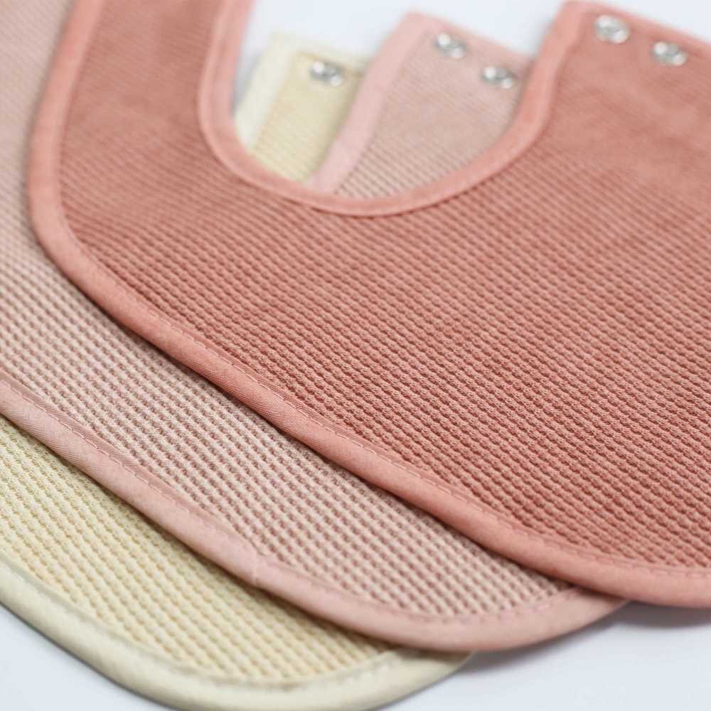 Idéal pour les tétés ou les premiers biberons de bébé, ce lot de 6 bavoirs naissance est en matière nid d'abeille, un tissu alvéolé, doux et qui permet d'absorber efficacement les liquides. Vendu en lot de 6, vous pourrez en avoir toujours un sous la main. Ils se ferment à l'aide de boutons-pressions présents sur le côté du col. 3 couleurs unies tendance, blanc cassé, vert d'eau et vert olive.
