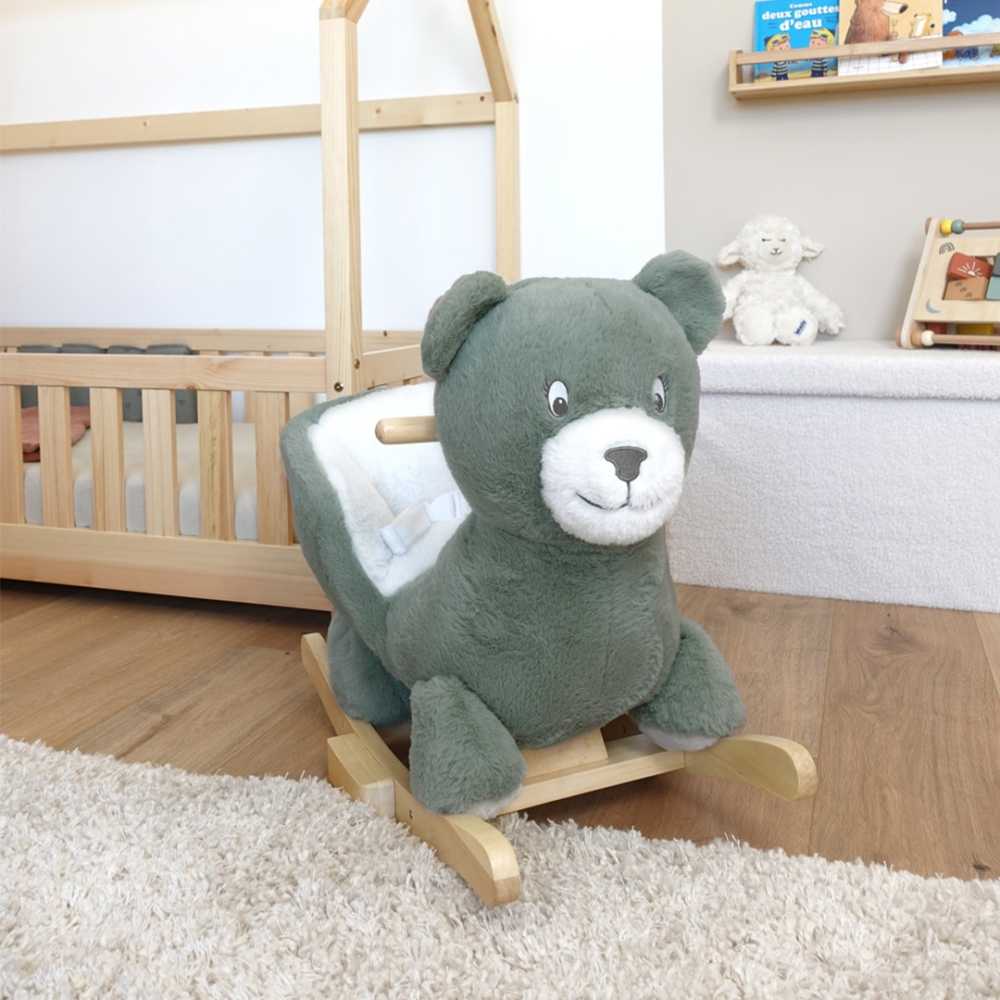 - Animal à bascule en forme d’ours, adapté aux enfants de 10 à 36 mois.