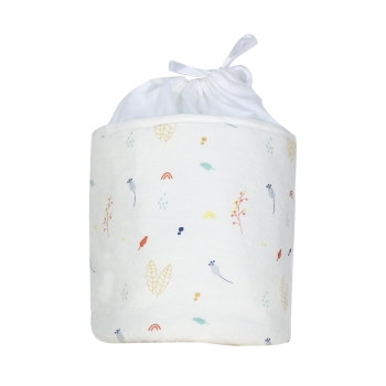 Le beauty case se referme avec de petits liens pour devenir nomade. Peu encombrant, il se glisse en un clin d’œil dans le sac à langer. Il est donc très pratique pour avoir tout le nécessaire en balade, en week-end et en rendez-vous. Changez, lavez, soignez votre trésor où que vous soyez ! Utilisez aussi la lanière pour suspendre vos produits à votre hauteur en cas de besoin, ou sur une poussette par exemple. En tissu et en velours, votre trousse est facile à nettoyer. Mesurant 22cm elle est assez grande pour contenir tout le nécessaire sans être trop encombrante.