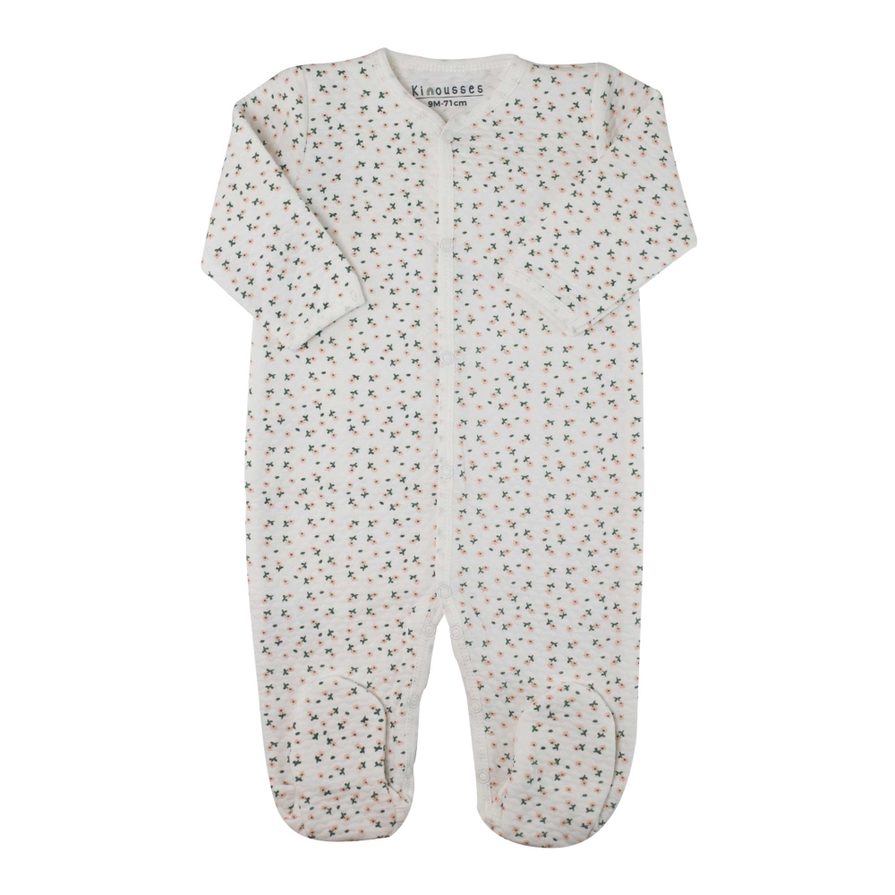 - pyjama bébé matelassé avec motif fleurs sur fond blanc, doux et réconfortant