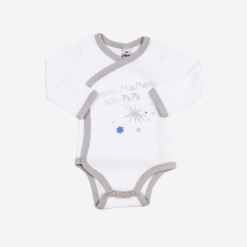 Scoprite il set di body incrociati per neonati, una scelta ideale per i neo-genitori alla ricerca di praticità e comfort. Ogni set include due body in cotone, uno bianco e l'altro verde acqua, perfetti sia per bambine che per bambini. Il modello con il motivo "50% mamma, 50% papà" aggiunge un tocco di fascino e tenerezza al guardaroba del vostro bambino.