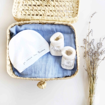 Durante i suoi primi giorni, il vostro neonato avrà bisogno di voi per regolare la sua temperatura corporea. Da notare che i punti chiave da riscaldare sono i piedi, le mani e la testa. Questo cappellino neonato in velluto è ideale per la maternità. Caldo e dal colore delicato e unisex, un'iscrizione "Voglio baci" vi farà sciogliere ogni volta.