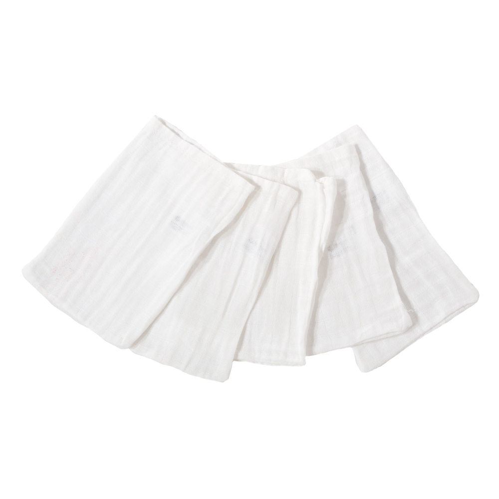 - 1 set di 4 guanti da bagno bianchi per neonato in mussola di cotone