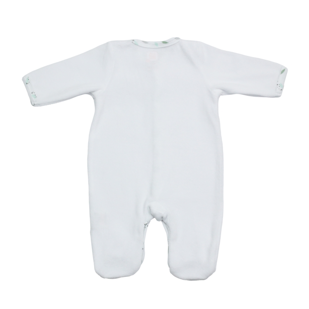 - 1 pigiama in velluto con apertura anteriore a pressioni bianco con stampa gatto sul petto