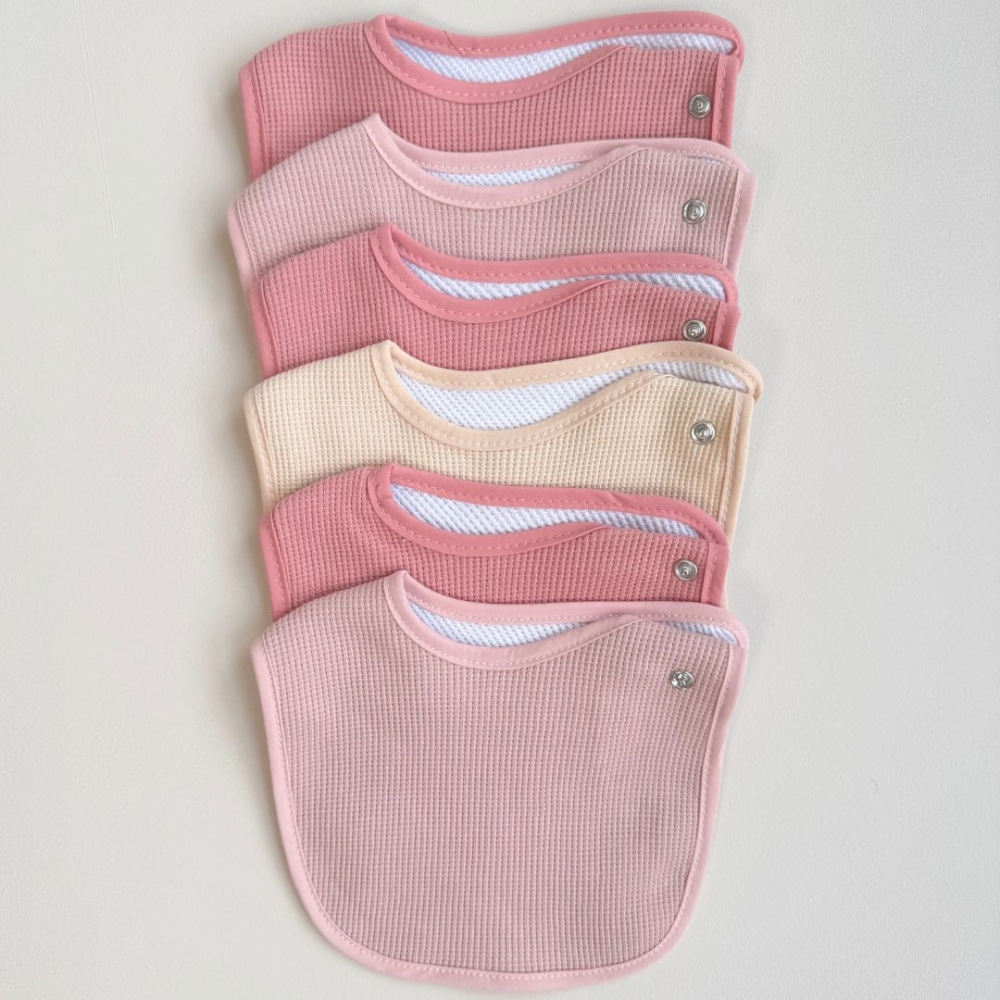 - 1 set di 6 bavaglini neonato rosa in tessuto nido d'ape 100% cotone con chiusura a pressioni regolabile - 18x21cm