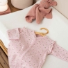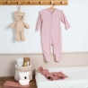 La maglia a coste si distingue per la sua morbidezza e leggerezza. Piacevole da indossare, accompagna i movimenti naturali del bambino offrendo al contempo una sensazione di morbidezza continua. Questa tutina neonato è ideale per le temperature miti o per un uso in interni, garantendo un comfort duraturo durante tutto il giorno e la notte. Il suo colore rosa pastello, abbinato a delicati motivi floreali, dona un tocco raffinato e senza tempo. Questo design dolce e armonioso conquista tanto i genitori quanto i nonni alla ricerca di un capo elegante e facile da abbinare.