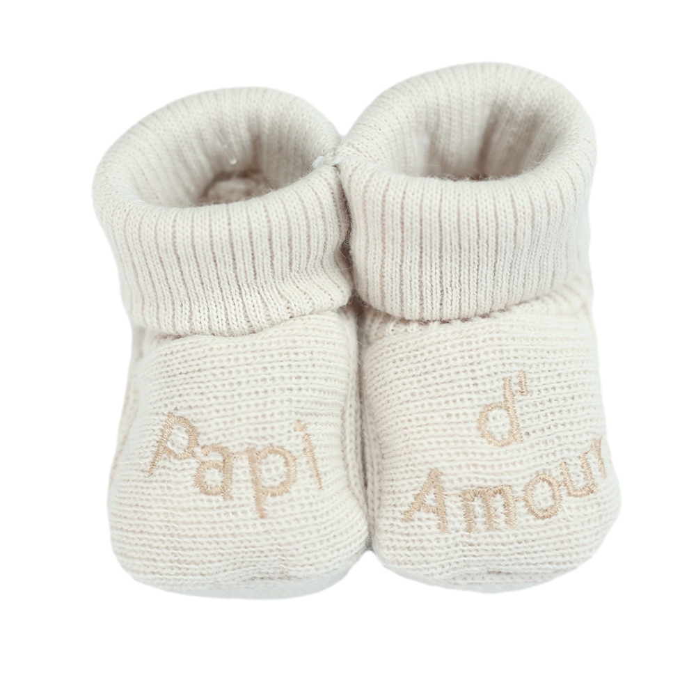 Tieni i piedini del tuo bambino al caldo con queste adorabili scarpine per neonati. Realizzate in maglia, offrono un calore delicato e un comfort ottimale. Il delicato ricamo "nonno d'amore" toccherà il cuore di tutti i nonni. Che sia per annunciare una lieta notizia o semplicemente per trasmettere un messaggio affettuoso, queste scarpine appositamente progettate per i neonati sono una scelta perfetta. La loro texture morbida e soffice assicura un comfort ottimale per i piedi delicati del tuo piccolo, mentre il loro taglio ergonomico garantisce una calzata sicura, permettendo al tuo bambino di muoversi in totale tranquillità.