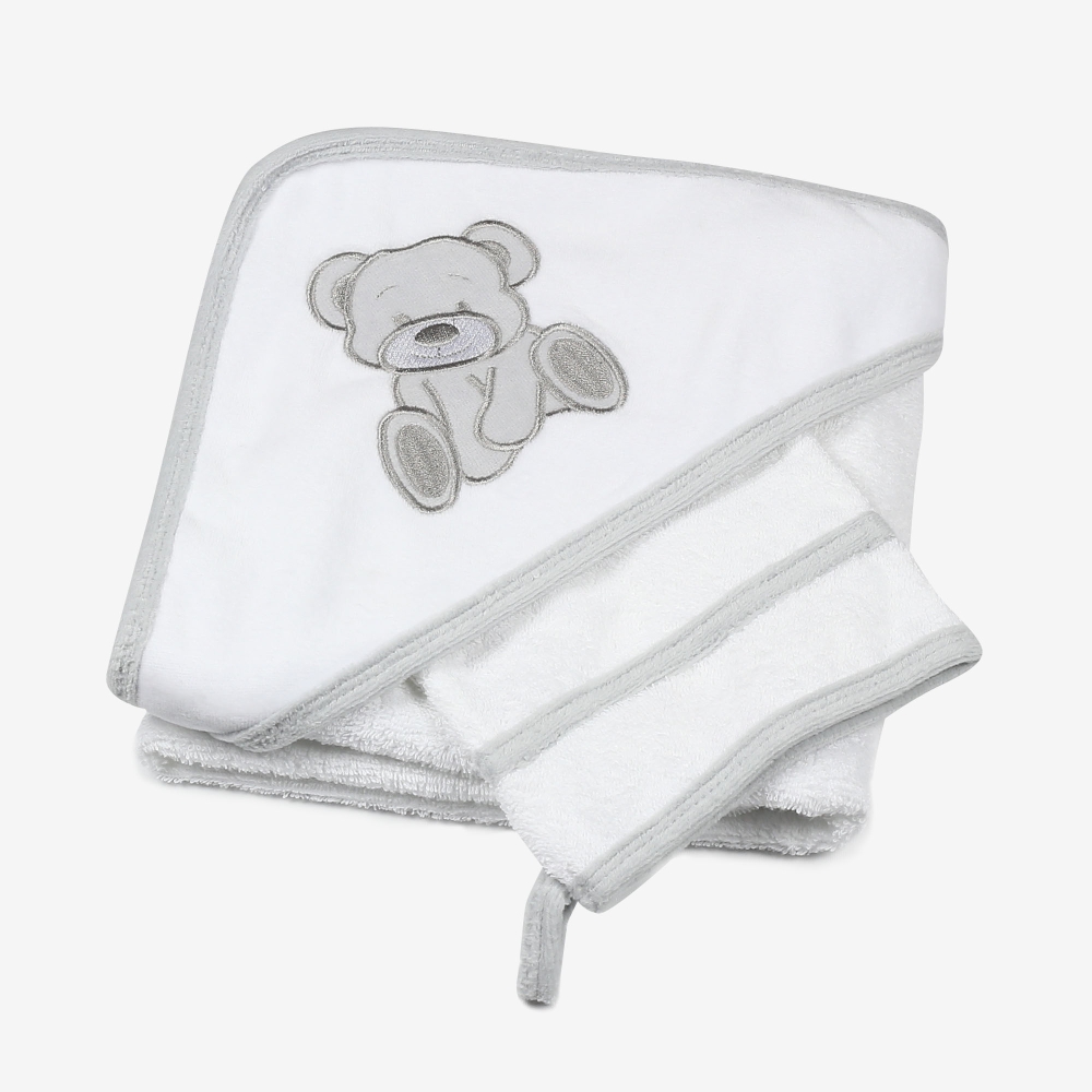 Set badcape voor baby + washandje in badstof 100% katoen.