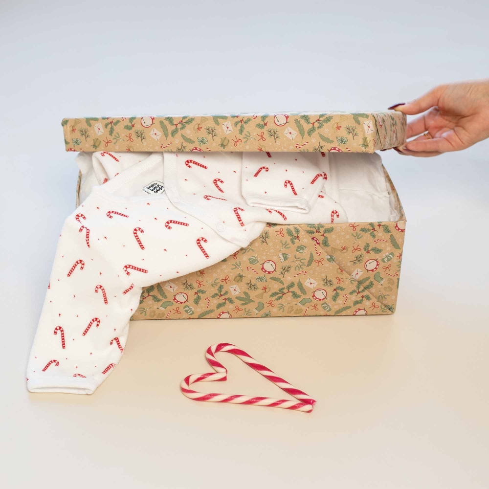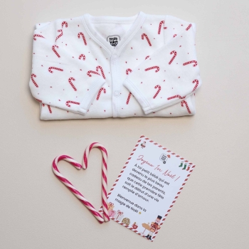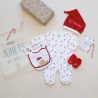 Deze geboorteset bevat alle essentials voor een magische eerste kerst. Naast de herinnering is hij perfect aangepast aan pasgeborenen met een pyjama maat 1 maand, een mooie kerstmuts, een paar slofjes 0/1 maand, een set van 2 geboorte slabbetjes met zachte klittenband aan de zijkant met een samenstelling van katoen en een zachte geplastificeerde membraan tussen twee lagen en een mooie speelgoedzak in katoen met linnen effect om de outfit te bewaren of de kerstcadeaus van baby in te doen.