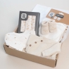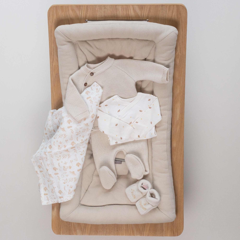 De neutrale en elegante kleuren van dit pakket brengen een vleugje zachtheid die zowel voor meisjes als jongens geschikt is, en creëren een rustgevend universum terwijl het trendy blijft. Beige roept warmte en tederheid op, ideaal om de pasgeborene vanaf de eerste dagen in een comfortabele cocon te wikkelen.