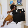 Met zijn elegante zwarte kleur, discreet en vlekbestendig, past het zowel bij mama's als papa's outfit. Licht, compact en in waterafstotend materiaal, deze rugzak is een uitstekende keuze om te geven of jezelf cadeau te doen voor een geboorte.